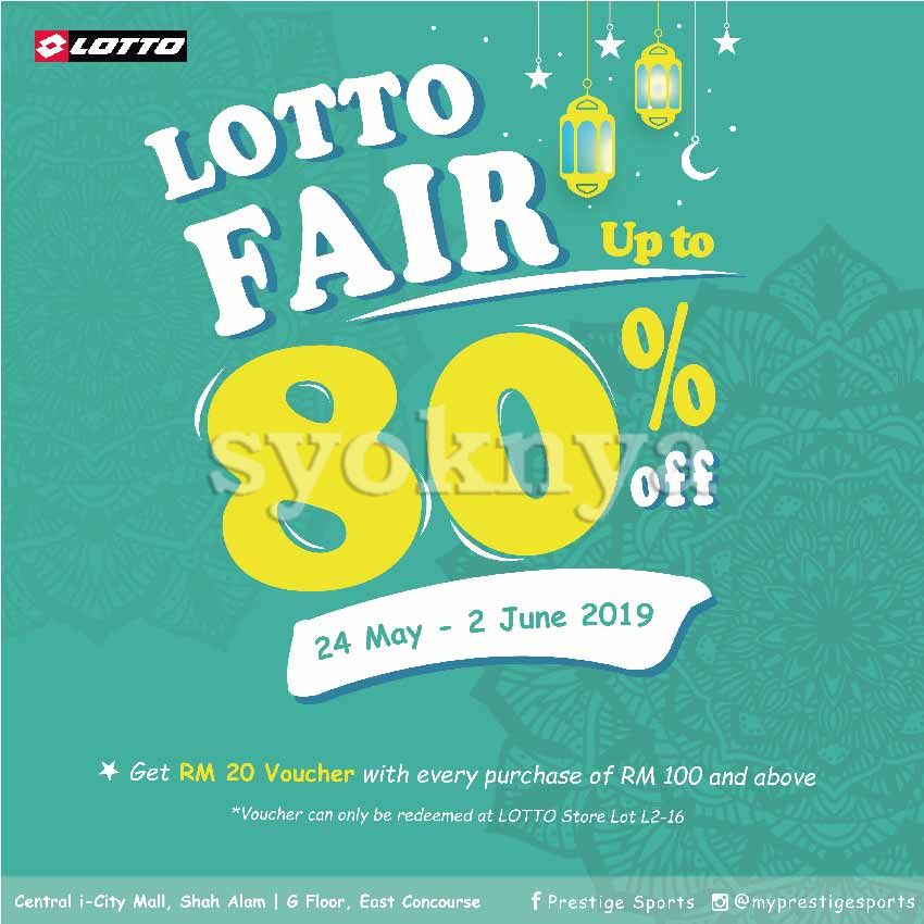 Join at Lotto Fair this Ramadhan from 24 May – 2 June 2019, 10am – 10pm at Central I-City Shah Alam. Get Lotto footwear & apparel at amazing discount. Shoes from RM50 and discount up to 80%. More saving on your shopping spree this Raya. Enjoy discount voucher if you spend more than RM100 in single receipt.